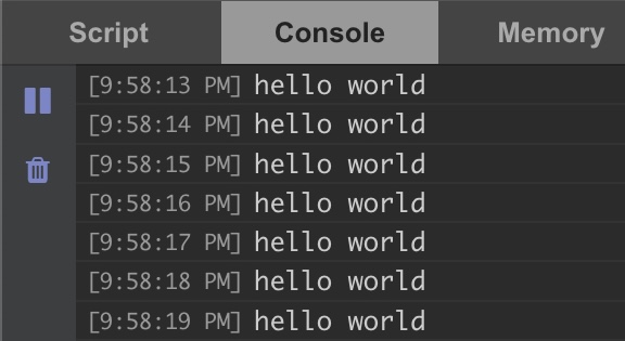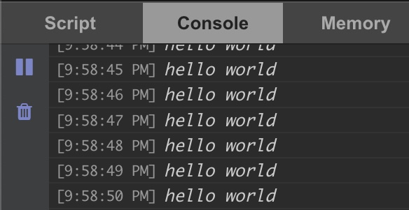 Here is the result if your code runs console.log("hello world") on each tick: